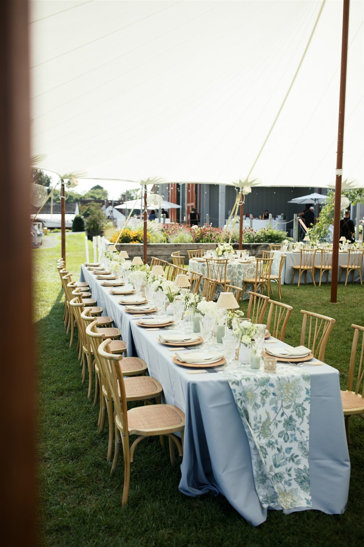 Emma envisioned a celebration that felt like the ultimate summer gathering, coastal grandmother with a touch of Serena & Lily elegance. Layered textures, playful patterns, and lush seasonal blooms brought the waterfront setting to life, creating a day that was as refined as it was effortless.